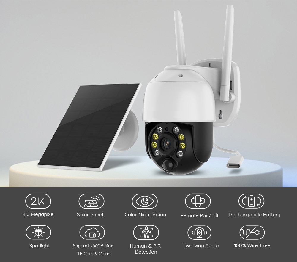 Necur M30 Solar Camera 2K high-resolution camera presents every detail with excellent clarity. Its powerful spotlights brings you colorful images that are as vivid at night as during the day.
